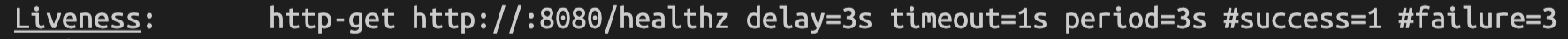 kubectl describe를 통해 라이브니스 프로브에 관해 추가적인 정보도 알 수 있다.